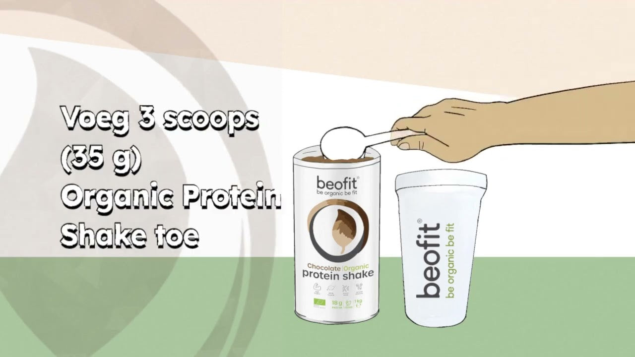 Stap 1: Giet 300ml water of plantaardige melk in je shakebeker.
